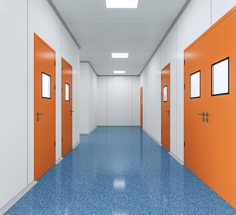 根據(jù)《潔凈廠房設(shè)計(jì)規(guī)范》車間的墻體和吊頂必須采用不產(chǎn)塵、不積塵表面平滑的材料施工,并且不能在車間中存在死角。采用凈化廠房施工專用彩板,基板頂板采用寶鋼0.4的鋼板,芯材密度達(dá)到14kg/m3,鋁材采用華聯(lián)專用鋁型材,為提高凈化間的使用壽命,并達(dá)到美觀大方的效果,所有鋁型材進(jìn)行電泳處理。